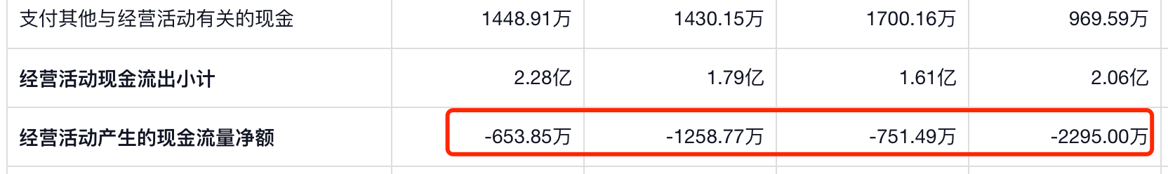 业绩增长的另一方面,是趣睡科技的经营性现金流净额持续走低。2022年-2025年半年报披露,趣睡科技经营性现金流净额分别为-2295万元、-751.49万元、-1258.77万元和-653.85万元,已经连续4年半年报为负数。