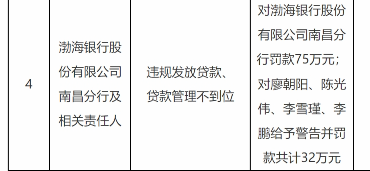贝赢网配资APP下载 贷款管理不到位等,渤海银行南昌分行被罚款75万元,责任人合计被罚32万元 贝赢网配资APP下载 来源:炒股网配资APP下载 网站:联丰优配 日期:2026-04-30 05:54:22 查看:199